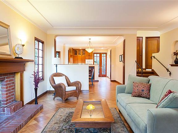 1940's bungalow with newer remodeled kitchen and updated bathrooms. Original architectural charm. Kitchen has French doors opening to deck and landscaped garden. Freshly painted, refinished hardwood floors and new Certain Teen "Landmark Pro" asphalt shingle composition roof.
