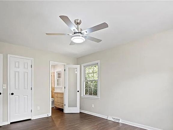 This charming ranch has a very livable floorplan with great flow. Enjoy wide plank laminate wood floors throughout and a spacious living room with vaulted ceiling and brick fireplace that opens into the dining room and kitchen for easy entertaining. Cozy breakfast nook has backyard/deck access via French doors. The serene primary suite also includes French doors leading to the back deck, dual closets, and a Pinterest worthy en-suite bath with lovely tiled walk-in shower. This property allows a self guided tour without an appointment! All utilities are included except from the electricity which you will be paying yourself.