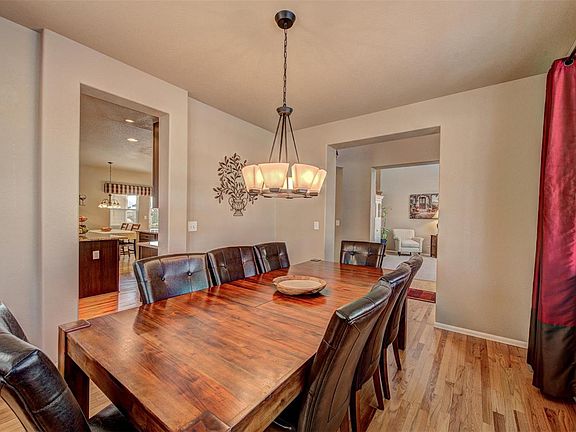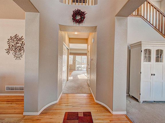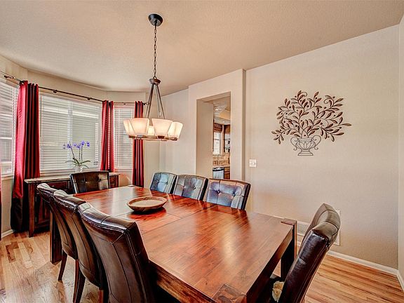 Welcome home! Upon walking in the front door, you are greeted with a dramatic grand entry, soaring ceilings in the living room allow lots of natural light. This home features hardwood floors in the dining room, kitchen and breakfast nook areas. The kitchen offers maple cabinets, granite countertops, stainless steel appliances, and custom lighting. All appliances stay! The open kitchen flows nicely to the large family room. The 2nd floor features a master suite with spa-like 5-piece bath and walk-in closet. The home is on a corner lot with a nice sized yard with a concrete patio, sprinkler system and a water softener. The 3-car tandem finished garage has custom cabinets. The basement with roughed in plumbing is waiting for you to finish to your liking. Bellecreek Charter School is located nearby. Easy access to major interstates and DIA. This home is immaculately clean, pet free, smoke free, and move in ready! Furnishings are available to purchase. This one won't last!