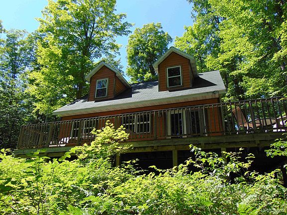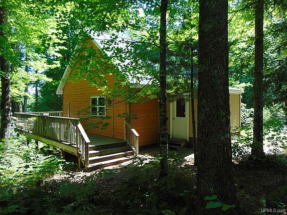 Beautiful 3BR 1BA cabin on 7.68 secluded acres with access to the north bay of Estes Lake in the heart of the Ottawa National Forest! This property offers seasonal access only and electric only available by generator. The nearest year-round road is 7 miles away. The interior of the cabin is tastefully done in T&G walls and ceilings, and you'll love the UP North decor! All furnishings and appliances will stay! The owner has just recently added the following updates in 2023, a new propane wall furnace, on-demand hot water heater, new 3500-watt super quiet generator, cell phone booster, some new plumbing fresh paint and new waterproofing to the deck. The main floor consists of a large open kitchen/dining/living area, one bedroom, bathroom and a propane fired sauna! The large upstairs features two non-conforming bedrooms, with views of the lake from each room! You'll love the huge wrap around deck offering total privacy and views of the lake! There is a 8x12 storage/generator shed with a 4x8 WUPDHD approved outhouse in the back leaving you with 8x8 for storage. Survey on file and the owner just had all the corners identified. This is an excellent area for all recreational activities! Hunting for Whitetail Deer, Bear, Grouse and more... For the avid fisherman, Estes Lake is a 22-acre lake in size and has depths up to 55 feet deep. Fish species in the lake include Blue Gill and Smallmouth Bass. The Sturgeon River isn't far away and is another excellent fishing spot! The area is also perfect for snowmobiling and Atv'ing! There so much to explore! The cabin is powered by a generator with propane back up lighting. If you're in the market for a beautiful property that is off grid, you'll definitely want to check this one out! Call for an appointment today!