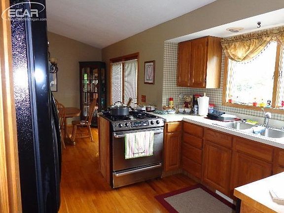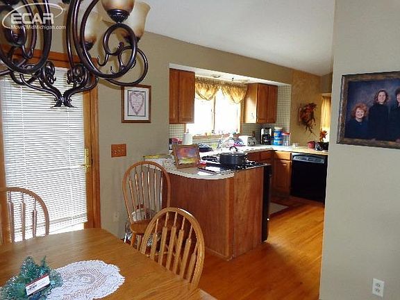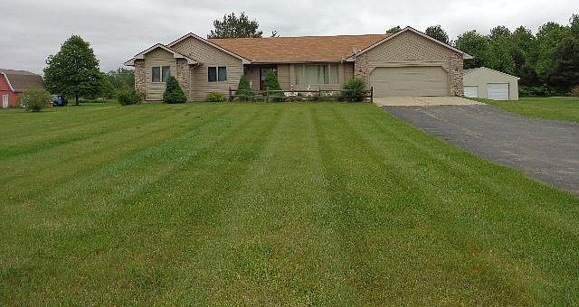Cozy ranch home with 3 beds and 2 full baths. New carpet and newer roof. Home features cathedral ceiling in the living room and hardwood floors in the Kitchen, Dining Room, and Breakfast Nook . Beautiful french doors in dining room opening up onto the deck facing the back yard. Home sits on 1.3 acres with a large pole barn in the back yard.