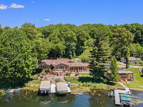 Jerdon must meet you at property or alarm system will be triggered. Wow! 100 ft on the water and 4,708 SF finished. Enjoy a great view of the lake and a quiet location with this stunning 6 BR lake home. DRIVE YOUR BOAT to other areas of the lake for swimming. Two family rooms and a living room the largest with a vaulted ceiling and expansive wet bar ideal for entertaining. Gourmet kitchen includes Sub-Z fridge, fireplace, living and dining rooms plus a breakfast nook. Many, many upgrades including abundant windows facing the lake, lawn irrigation, hardwood & tile floors, modern interior, 3.5 bathrooms, attached garage, large lakeside decks & patio areas, AND MOSTLY ALL FURNISHED! 2 Large storage sheds that match the house. 2 Carrier brand HVAC systems. This is a large family property with master bedroom that is 16 x 23. Has attractive 'look-out' lower level with 7 windows to lighten things up. Corey Lake is a rare gem lake with 630 acres of gin-clear spring water and much of shore line is undeveloped because of wetlands or summer kid's camps. Low boat traffic! Nearby to several other lakes including Long, Clear, & Pleasant Lakes. Just minutes into Three Rivers MI with big box stores, local pubs, & everhthing you need. Easy access down to I-80/90 or U.S. 12. Shown by appointment only. Do not enter property without Jerdon as security system in place.