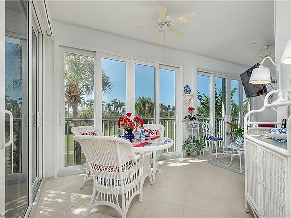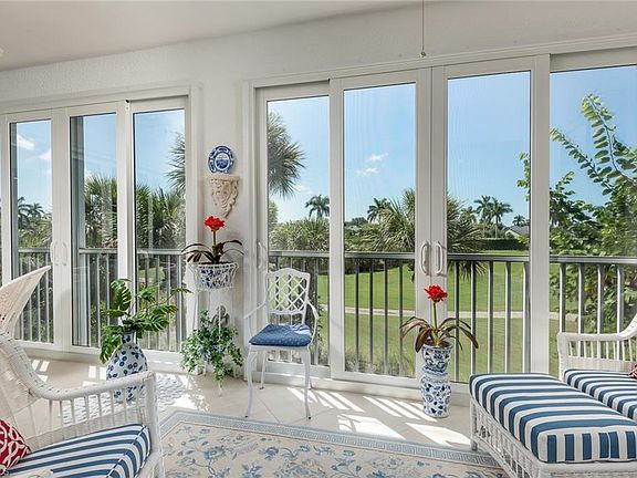 This property has a beautiful view of the course with Eastern exposure. Enjoy expanded interior space from the impact sliding glass door enclosed lanai. Glassed in Lanai creates about 240 s.f. additional living space. 18" diagonal tile in main living areas - this light & bright property is enhanced by the soaring vaulted ceilings. The kitchen features refaced cabinets by Cornerstone, natural gas stove, center island with breakfast bar, solid surface counters and dinette area. In this spacious great room floor plan, the formal dining area is adjacent to the kitchen and living. The master bedroom overlooks the course and the master bath has been updated to include a vanity make-up area. The built in shelves in the third bedroom make a perfect reading area or bedroom. Throughout you'll find large walk-in closets, plantation shutters, ceiling fans and surround sound. This property is immaculate with obvious pride of ownership. 186 slip deep water Marina with slips available for lease or purchase. Some amenities herein available but not offered. Living area sq. ft. per developer floor plan.