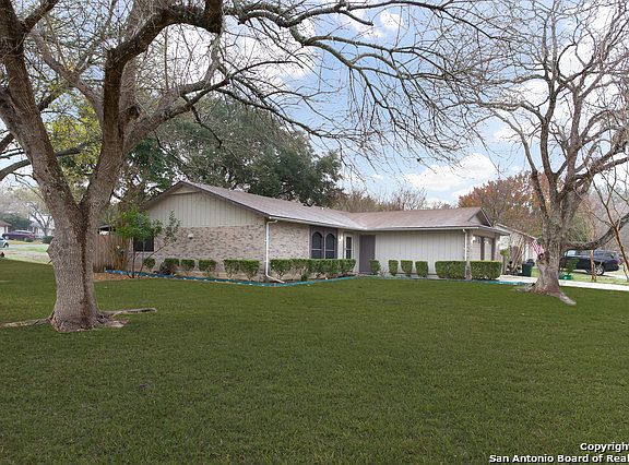 This charming home sits on a TEXAS sized corner lot surrounded by mature trees. The front exterior has great curb appeal. The backyard has a large covered patio area that is perfect for entertaining. Inside you will find a bright open floorplan with large windows throughout. With the cozy fireplace, 3 generous sized bedrooms, and new flooring throughout, this home is a MUST SEE and WON'T last long. Conveniently located near Randolph AFB, IKEA, and the FORUM with shopping and restaurants galore!!!