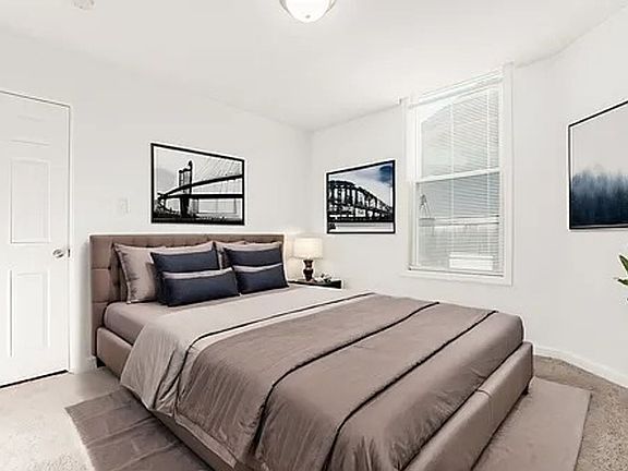The kitchen is equipped with high-end stainless steel appliances, including a refrigerator, oven, microwave, and dishwasher, making meal preparation a breeze. Stunning hardwood floors add to the aesthetic appeal and are also easy to clean and maintain. The kitchen boasts elegant quartz countertops, providing ample space for meal prep and a sleek, modern look. Large windows flood the space with natural light, creating a warm and inviting atmosphere. Ample closet space throughout the apartment ensures that storage will never be an issue.