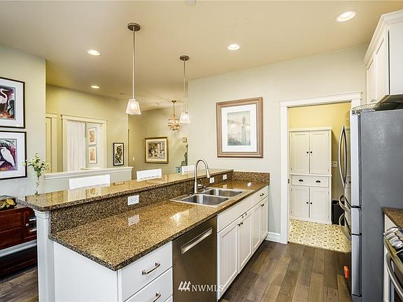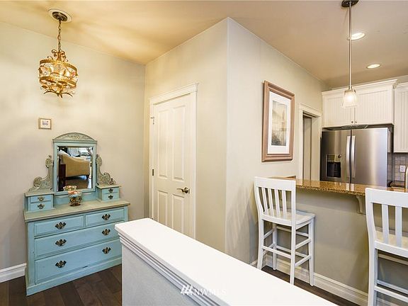 Amazing cute condo located in town! This 1 bedroom and bath is cozy and comfortable. Open kitchen with granite counters, new induction stove and stainless appliances. Living area includes gas fireplace. Beautiful new wood floors and freshly painted. Enjoy lots of light as this is an end unit with lots of windows looking at Storvik Park. Relax on the adorable private patio. Covered garage parking with an elevator. Close to the hospital and stores.