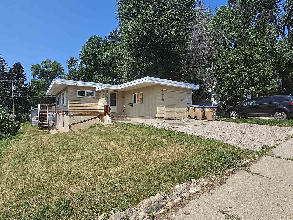 6-bedroom duplex located in NW Minot, near Minot State University, and outside the flood zone. The property features 4 bedrooms upstairs and 2 non-conforming bedrooms downstairs with a walk-out basement. It also includes a huge, oversized, 2-stall insulated and sheetrocked garage with alley access.  With a little TLC and intentionality, this property could make an excellent single-family home or investment or multi generational living opportunity. Alternatively, you could live in one unit and rent out the other. Each unit is separately metered for electric and gas and includes central AC and dishwashers with shared laundry area in lower area.