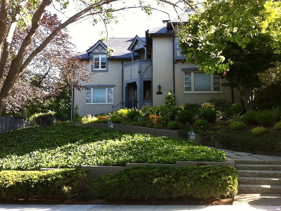 Tudor style home sits above the street with large park like level out backyard and patio. Large gourmet kitchen, hardwood floors throughout, filtered view of Golden Gate and Bay bridges, large formal dining room, sunroom, curved walls in kitchen and halls, slate and copper roof, basement workshop, two car attached garage on side, stone driveway, mature trees, fully landscaped.