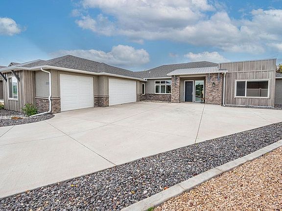 Discover this beautiful home in Fruita, Colorado, ideally situated for outdoor enthusiasts with easy access to the renowned 18 Rd & Kokopelli trail systems! Walking/biking distance from downtown Fruita, Fruita Community Center, & Salt Wash Park. Spanning over 2,400 sq. ft., this home features 4 bedrooms and 3 bathrooms, with an oversized 3-car garage and low maintenance, beautifully, xeriscaped front yard. Step inside to discover a thoughtful split floorplan keeping secondary bedrooms separate from the luxurious primary suite, ensuring privacy for all. The master suite is a true retreat, with a spacious 5 piece bathroom including a garden tub & walk-in shower, as well as a well-thought-out walk-in closet. Large windows throughout the home flood the interior with natural light, creating a bright and inviting atmosphere. The grand kitchen, complete with a gas range and walk-in pantry is a dream for any chef. The outdoor living space truly sets this home apart! Enjoy 800 sqft of entertaining area, featuring a cozy gas fireplace under the back patio—perfect for chilly fall and winter nights. The home backs to Pine Road but boasts a tree barrier for sound reduction, offering both tranquility and convenience. Delicious fruit trees include peach & plum trees and a pomegranate bush. Experience unmatched elegance and functionality in this Dahl Built Home—your oasis awaits!