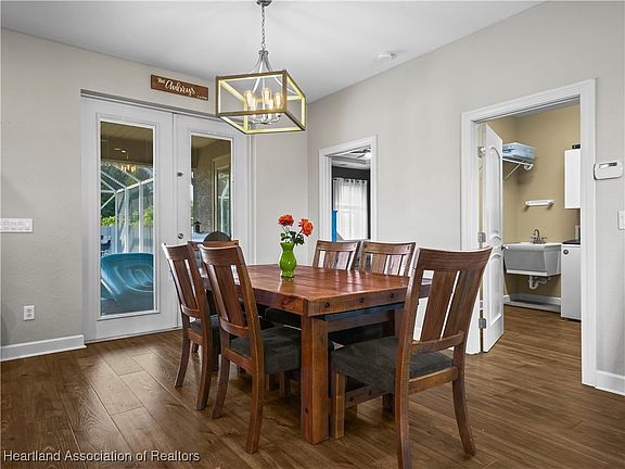 Dear Santa, I WANT THIS ONE!! Beautifully upgraded custom pool home with exceptional curb appeal in desirable Sebring Country Estates! This stunning residence welcomes you with lush landscaping, elegant brick paver driveway and walkways, and high-end upgrades including a whole-house audio system and central vacuum. Inside, the open floor plan is enhanced by 9'4" ceilings, a picture window that fills the home with natural light, and stylish wood laminate waterproof flooring throughout the living areas and bedrooms, with tile in Primary bath. The chef-inspired kitchen features premium stainless steel appliances, a walk-in pantry, and an extended breakfast bar with seating for four. Double French doors from both the dining room and the primary suite lead to the covered brick paver lanai and the caged, heated pool—perfect for year-round enjoyment. The luxurious primary suite offers a tray ceiling with crown molding and ambient lighting, a large walk-in closet, and a spacious ensuite with a jacuzzi soaking tub, separate walk-in shower, and dedicated dressing/vanity area. Two guest bedrooms—each with walk-in closets—are privately located on the opposite side of the home, accompanied by a full guest bath with convenient direct pool access. Solid-core doors throughout enhance both quality and quiet. The patio and pool deck are fully brick-pavered for easy maintenance and timeless appeal. The heated pool is equipped with a salt water system and enclosed by a heavy-duty pool cage. Additional highlights include a spacious indoor laundry room with wash sink and extra cabinetry, plus a 2-car garage with overhead storage. This home has been meticulous maintained, thoughtfully upgraded, and is truly move-in ready!