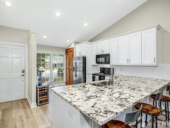 This is the one you have been looking for! Move-in ready End unit townhome in private North Raleigh location-minutes to North Hills. Seller has renovated everything! Open floorplan w/ new kitchen cabinets, granite counters w/ bar seating, tile backsplash, new luxury vinyl flooring throughout (no carpet), smooth ceilings, fresh paint & more. LR w/ vaulted ceiling & fireplace w/ floor to ceiling stone wall. Master bedroom opens to LR & Sunroom w/ wooded views. Exterior, roof & grounds maintained by HOA.