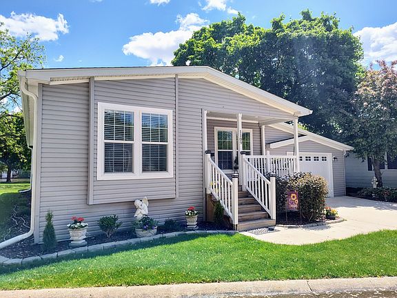 Experience year-round bliss on the picturesque Fox River in this stunning manufactured home located in Willow Lake Estates, an AGE-QUALIFIED (55+) COMMUNITY! Boasting 2 bedrooms plus a den and 2 full baths, this residence is designed to maximize views of the river! Step inside to find a seamless flow from the entry through the house, leading to sliding glass doors opening to the Trex composite deck. The den offers versatility and can easily be converted into a third bedroom if desired. The primary bedroom features a ceiling fan, a spacious walk-in closet, and a luxurious en-suite bath with double sinks. A second bath serves the additional bedroom and guests. Entertain effortlessly in the spacious great room, where the living room, kitchen, and dining area harmonize beautifully. The kitchen is equipped with stainless steel appliances, ample counter space, and cabinets galore. Gather around the island for casual meals or snacks! Outside, the deck provides the perfect spot to unwind, with a bar included for cocktail hours and various seating areas to soak in the breathtaking river views. The laundry room conveniently connects to the expansive dry-walled garage, offering plenty of storage, including a custom-made walk-in closet. With everything just 2 years old, enjoy peace of mind and worry-free living for years to come. Don't miss out on this unparalleled opportunity to make every season special in your new Fox River haven! The monthly "HOA" lot rental fee includes lawn care, snow removal and access to the swimming pool, a private stocked lake, and a clubhouse with activities, a workout area and library. Close to I90, METRA stations, PACE, shopping & restaurants; you'll find everything you need just a short drive away. Please note that a lot rental application, credit & background check are required. NO RENTALS ALLOWED.