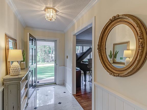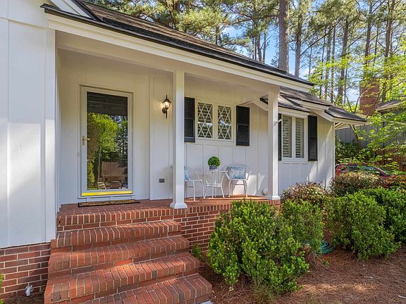 This beautiful ranch is brimming with charm & custom features. Prime Midtown Raleigh! Wooded lot on .54 acres. 3 bedrooms on main floor! Huge windows off the back of the house let in lots of natural light. Entry foyer with marble tile flooring, formal living & dining, large family room with gas fireplace accent wall, & built-ins, breakfast room with picture window & bench, office/flex room with built-in shelving & cabinets. Kitchen with quartz tops, lots of cabinets, window over sink, & 2 pantries. 2 flex spaces perfect for home office, gym, etc. Owner's suite w/access to patio, WI closet w/custom shelving system, & updated shower enclosure with dual shower heads. Hardwoods throughout main level. Another full bath, bedroom, & bonus/flex space upstairs with brand new carpet. Serene backyard setting with brick patio, garden areas, mature trees, & lanscaping. Beautiful flat lot with tons of potential. 2 garages, one is attached & connects to the house, the other is dettached. Roof 2017. Sealed crawl space. floored attic storage space, which could be finished off for another room. Located 5 min from North Hills!