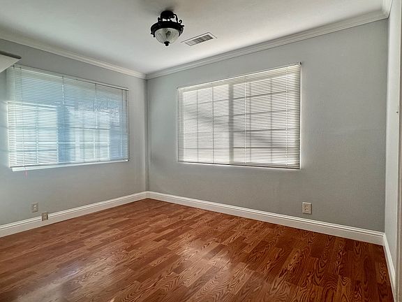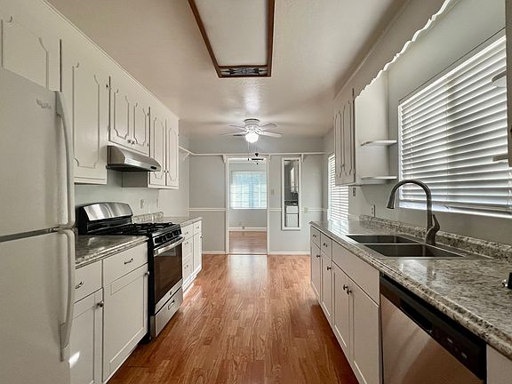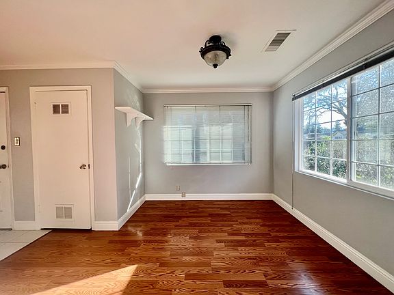 Light and bright home featuring detached garage with flex space and fenced yard with deck. Inside there are hardwood floors, kitchen with gas range, refrigerator and dishwasher. The dining area is open to the kitchen. There is one standard bedroom and two smaller bedrooms. The home has washer/ dryer hookups. Month to month lease term. Tenant to pay all utilities. Gardener provided. One small pet negotiable with additional deposit.