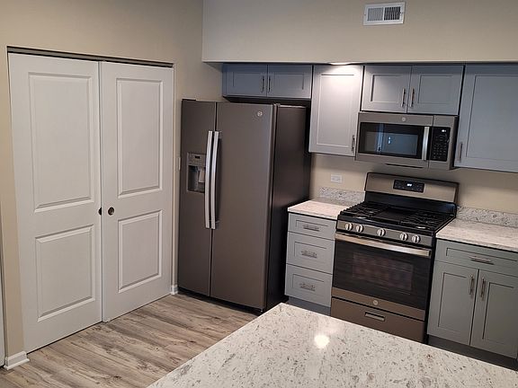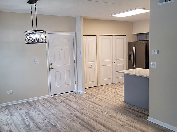 Condo Initial rental in Pinewood Estates Lockport. Just fully remodeled, in pristine new condition throughout. Compare this ones all new never lived in condition with all others. You'll be the first in it and its a must see....All brand new appliances. 2 large bedrooms w/ large closets. 2 bathrooms. Central Air. Large eat in kitchen with granite countertops and corner sink with purified water system and garbage disposal. In unit laundry. All new LVT / Carpet flooring. Easy walk in / walk out ground floor unit. Close outside parking as well as 1 car garage w/ storage. Grounds & premises upkeep by property Mgt company. Quiet and peaceful surroundings. Dog run. Very near I-355, I-80, downtown Lockport and retail, Sports / Park grounds, and Silver Cross Hospital. Renter pays electric and gas 1 year lease First and last month due at signing No cash / Electronic rent payments preferred More than 3 living on premises requires review No smoking Wooded / Nature area present Unit newly remodeled throughout Application required for showings