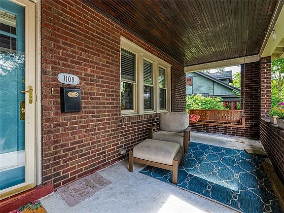 Great location with a cozy front porch. Built-ins surround a decorative fireplace and mantel. French doors open into the dining room