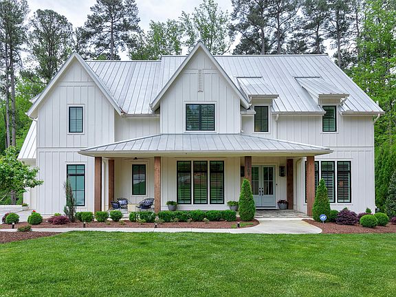 Absolutely gorgeous farmhouse style! The inviting front porch with stone floor welcomes you. Gleaming hardwood flooring on first level with inlaid design at foyer. Beautiful formal study has glass pane sliding barn doors. Enjoy formal dinners in the dining room with exquisite coffered ceiling and handy butlers pantry with wine refrigerator. The kitchen with center island opens to the family room. The breakfast room /sunroom features window seating. There is a private guest bedroom on 1st floor. The primary bedroom suite has a fireplace in the sitting area and gorgeous luxury bath. Enjoy movie night in the bonus room. The full unfinished basement can be used for storage or future expansion. Enjoy the view of the fenced back yard from the deck or lower patio. There are plantation shutter throughout the house. epoxy floors in the garages. Whole house reverse osmosis water system.