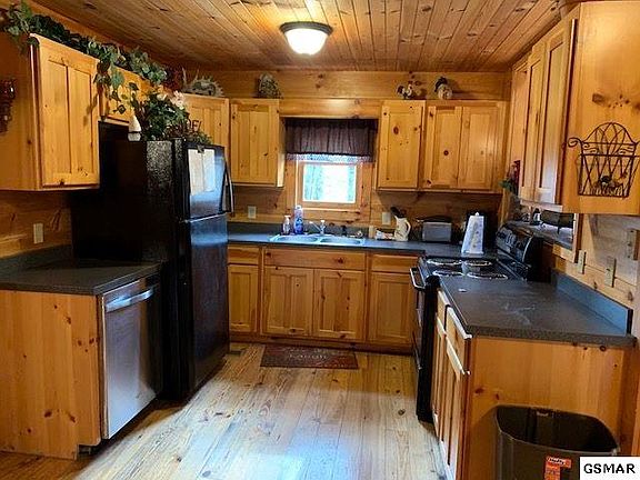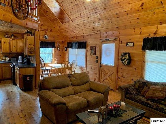 Log look cabin at the end of the cul-de-sac for some privacy. Large front covered deck and rear covered deck with a hot tub. Paved driveway. Gas log fireplace. Hardwood floors throughout. Log beds and log furniture. Loft with pool table. Sleeper sofa, much more. All measurements and information were obtained from the county tax records and the buyer should verify all information. Linens that belong to the cleaning company do not convey. Propane tank is leased. Cable boxes and accessories belonging to the cable company do not convey.