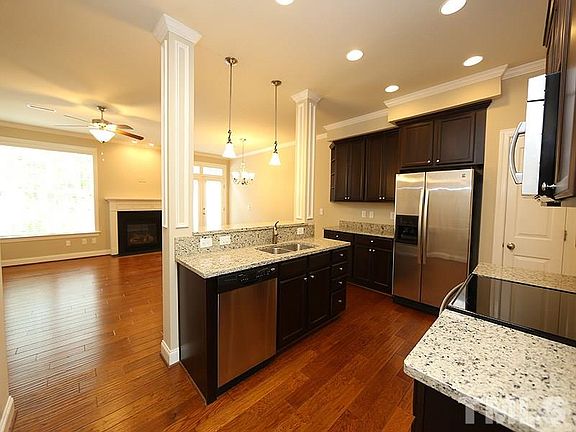 A beautiful three story townhome located in the heart of the Triangle. This move-in ready home is equipped with 5-1/4 hardwoods downstairs, granite in the kitchen and master bath, pendant lights above kitchen bar, has an open floor plan and a large unfinished 3rd floor preplumbed for bath. Wired for Google Fiber and the garage floor has been newly expoxied. House is located a block away from the planned downtown Morrisville space. Easy access to I-40, 540, RTP and shopping.