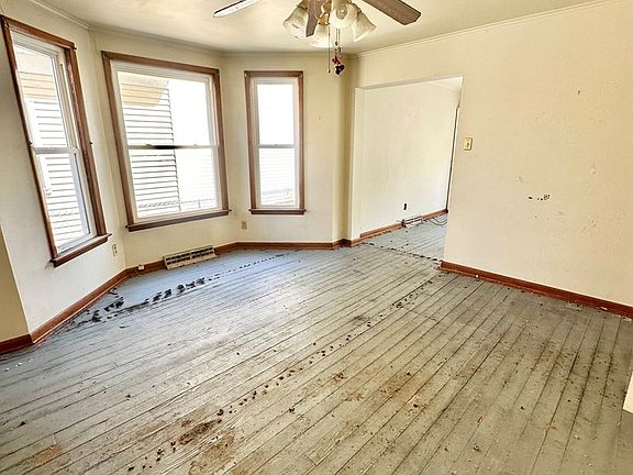 Situated on a quaint street, this home offers endless potential to bring it back to life. Step onto the welcoming front porch and enter into the living room flowing into the dining room and spacious kitchen. The kitchen includes washer/ dryer hookups and electrical box for the house. Upstairs, you'll find 3 bedrooms, one of which is captured with the full bath. The covered back porch leads to detached garage with an efficiency apartment with separate utilities. Opportunity for rental income. The fenced in yard offers privacy. Access to basement is through outside cellar doors. Rear garage apartment is taxed as class 4 rental and separate utilities.