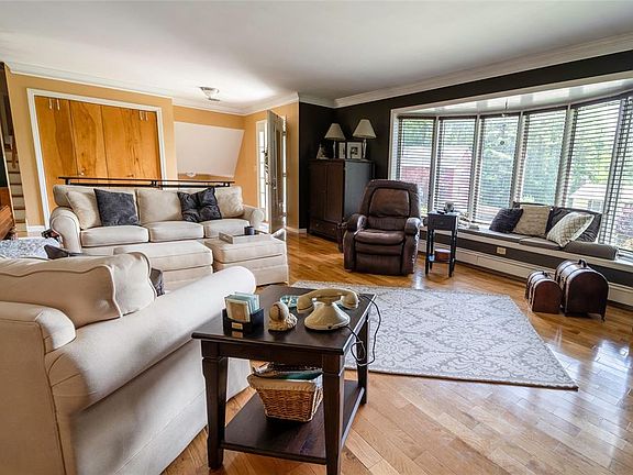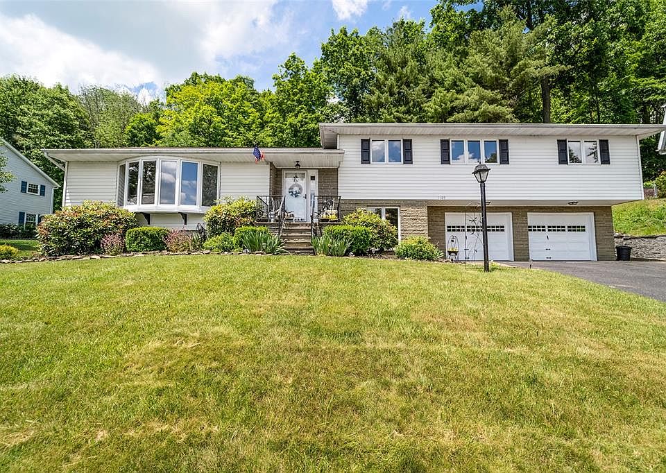 A perfect home for those who love to entertain. Custom built, immaculately maintained, split level ranch with master suite, 2 bedrooms, bonus room, 2 full baths and full laundry on the upper level; half bath and an additional bedroom/office on the lower level. Bedrooms are spacious with lots of natural light, ceiling fans, large closets and built in desks. Main level has a large living area, beautiful bay window with seating, a separate dining area and a spacious eat-in kitchen with SOLID MAHOGANY CABINETS. New custom oak hardwood floors throughout, newly installed central air, new retaining wall, backyard patio with lots of privacy and multiple areas for entertaining, already wired for a hot tub. Large driveway (8+ vehicles), 2 car garage with excess storage plus large dry basement for additional storage or finishing. Beautiful, 2x deep wooded lot on a quiet street in sought after neighborhood within walking distance to local shopping plaza and parks. This property is a must see!