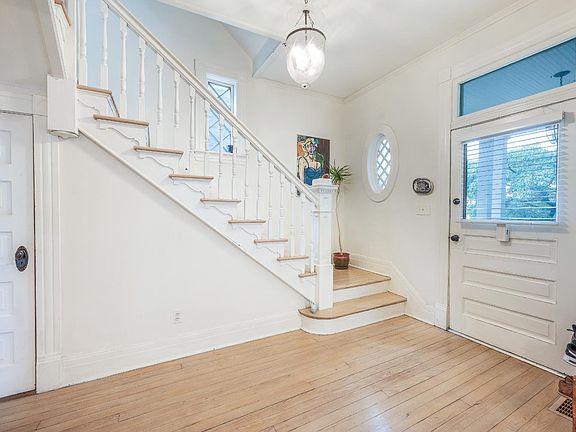 Perched atop Federal Hill, this beautiful Victorian home provides views of Downtown while touting privacy due to being far above the Street. Don't let the striking stone staircase alarm you, the owners have thoughtfully installed a lovely retaining wall and off street parking behind the home (accessed through the alley) installed by local stone masons Shrader Stone. The updated kitchen welcomes you with tall ceilings and cabinets, quartz counters and stainless steel appliances. The home was thoughtfully designed with a warm neutral interior welcoming all decor styles. The living Room and dining room are spacious and feature original mantles, moldings and large light filled windows. Upstairs you will find 3 Bedrooms and the sweetest office perfect for working from home. The updated bathroom has marble tile flooring and large vanity. Don't miss the upstairs laundry and walk up attic for storage! This home has all the updates you're looking for without sacrificing any charm.