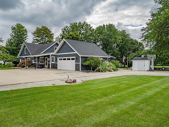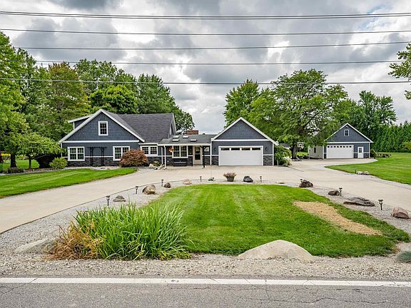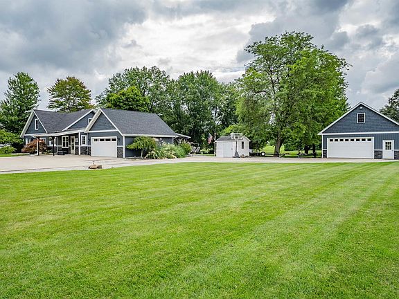 Absolutely stunning & totally unique updated 2-story home with tons of character & much to love from rustic cabin vibes & wall of stone to multiple living spaces & 3 gorgeous acres with massive pond—in NWAC school district! Offering the best of both worlds you can enjoy the quasi country life from this peaceful & serene plot of land while also being conveniently close to local amenities. Located between Lima & Coldwater Rds, just north of Carroll Rd this 3 bedroom, 2.5 bath cape cod style home is sure to charm from moment you arrive as it is packed full of high quality craftsmanship & attention to detail. Built in 1955 it has since been refreshed for an eclectic & inviting mix of old & new including the newer detached 2 car garage with flex space above. Long looped driveway keeps home back from road with many tall trees & select landscaping elements accenting attractive mixed medium exterior & attached 2 car garage. Covered main entry with skylights allows plenty of natural light into warm & welcoming atmosphere & even more skylights inside open concept main living area complemented by wood flooring, raw wood trim/wainscoting & vaulted wood paneled ceiling! Casual dining is next to cozy carpeted hearth room with rustic exposed barn beams in ceiling & fantastic floor to ceiling Indiana river stone wall with fireplace & back yard views. Kitchen is open to dining with pass through window, abundant custom cabinetry, SS appliances, hard surface counters & recessed lighting. Generous formal dining room with modern chandelier on beautiful hardwood floors links to lovely living/sitting room through large entryway. Carpeted den/home office with stylish lighting/wood panel ceiling & main shared bath with tiled walk-in shower off. Amazing main floor primary bedroom features cathedral wood ceiling, walk-in closet, glass doors to private mini covered porch & incredible en suite bath with walk-in shower, soaking tub, dual sink hard surface vanity & sliding barn door. Upstairs you’ll find a little reading/office nook, half bath & 2 more comfortably sized bedrooms with ample storage throughout. Each bedroom has its own flair with lots of angles, more hardwood floors & wood paneling galore! Out back truly is your own private oasis with both covered & uncovered patios ideal for lounging & relaxing as you take in the spectacular nature views. Sprawling yard is studded with trees & feels ultra private surrounding pond. Schedule a tour today!