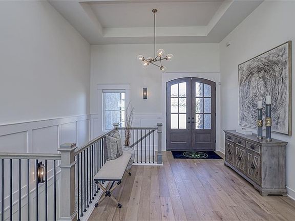 Stunning and award winning Gunnison IV custom reverse homey JFE Construction. This home is loaded from top to bottom. Beautiful double doors great you as you walk into home with soaring vaulted beamed ceiling. Floor to ceiling stone fireplace in great room. Kitchen with all the upgrades including butlers pantry. Master suite with custom shower and soaker tub with access into laundry room. Lower level with entertaining bar and island and two additional private bedrooms each with their own baths. Oversized patio off the walk-out basement, covered deck with fireplace, yard irrigation and security system. Home is located in Woodland Trails, an outdoor lifestyle community featuring miles and miles of paved walking trails, resort style pool, playground, sports field and fishing ponds.