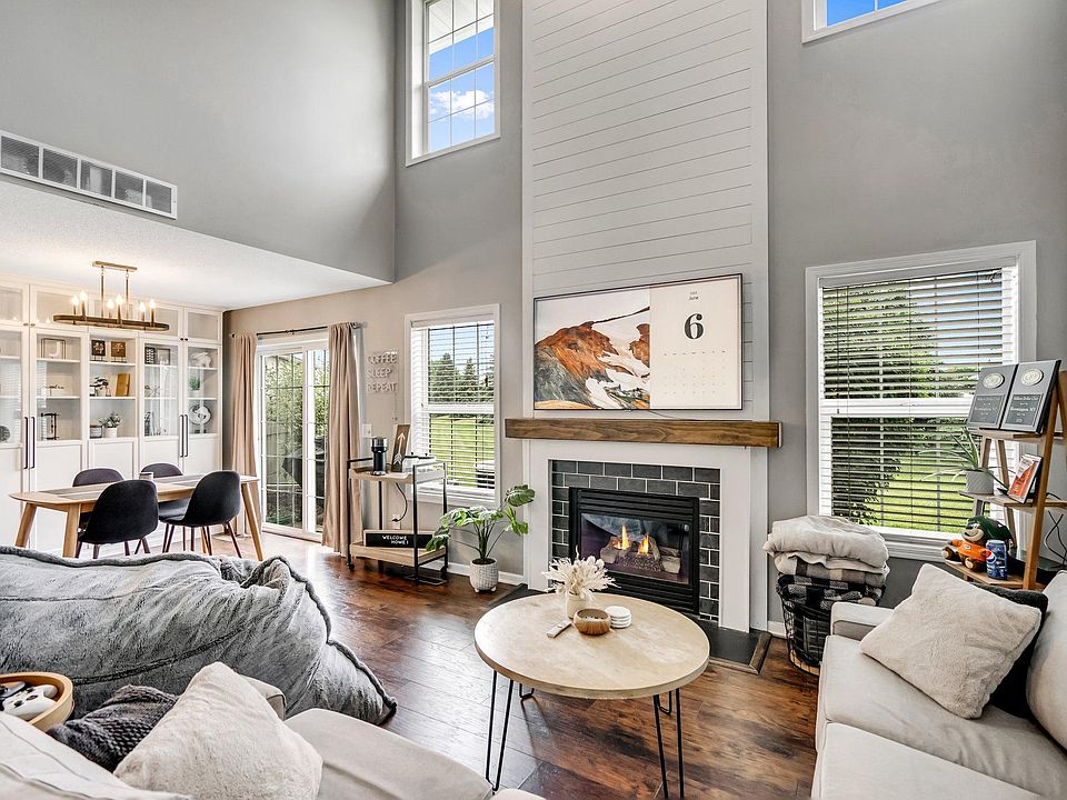 As soon as you enter you will be greeted with beautiful natural light from the numerous windows and the open vaulted ceiling. Nicely updated townhome with a newly added bedroom upstairs also includes newer floors (2020), newer built in cabinets (2021), carpet (2019), bathroom flooring (2021), and the aforementioned 3rd bedroom (2022). You will enjoy the large two stall garage with additional parking at the end of the cul-de-sac. Step outside on the patio and take in the huge backyard; an added treat for townhome living. Conveniently located near HWY 169, restaurants, coffee shops, and shopping.