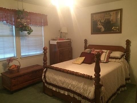 Peaceful established subdivision. 4 bedrooms, split master, large sunroom off master. Trees in large back yard, storage building