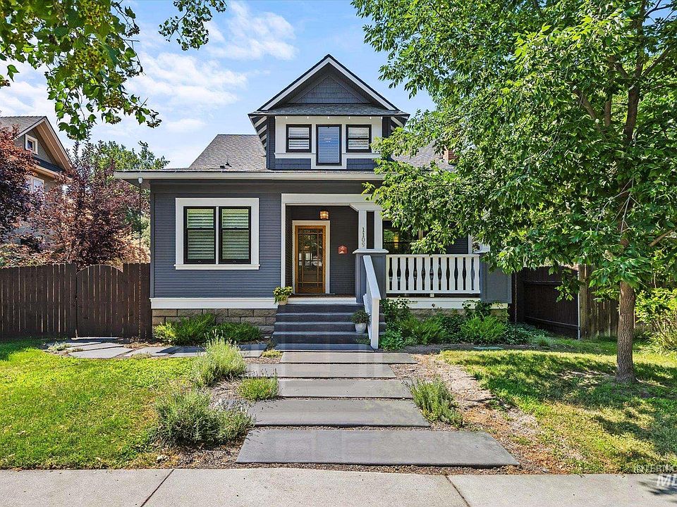 This fully renovated Craftsman in Boise's Historic North End offers everything you need for an active urban lifestyle. Located just blocks from Hyde Park, Camel's Back Park & Trails and Downtown, you are truly in the heart of it all. The main floor has a designated office and offers an open concept w/ hardwood floors throughout providing a continuous flow between the living spaces. The tall ceilings and abundance of windows lets in light from every corner and lends to the spacious feel. The updated kitchen features granite countertops, ample storage w/ a large island. Main floor primary bedroom boasts an ensuite bathroom and large walk-in closet. Upstairs are 3 generously sized bedrooms all w/ walk-in closets. Downstairs is a bonus room & flex space. Multiple outdoor gathering spaces range from the charming front porch w/ it's roomy swing to the custom covered backyard fireplace. An oversized detached 2 car garage w/ potential for an ADU. Owner-carry financing available.