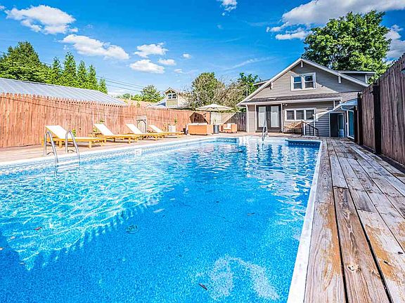 - EXTERIOR FEATURES: Wood Deck, Landscaped, Trees, Exterior Lights, Concrete Walks, Porch, Fenced Yard, In-ground Swimming Pool