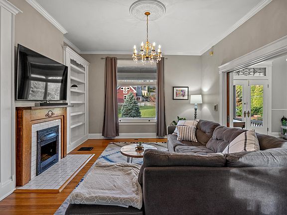 - Features: Fireplace(s), Wood Flooring, Built-in Features, Bookcases, Hardwood Floors