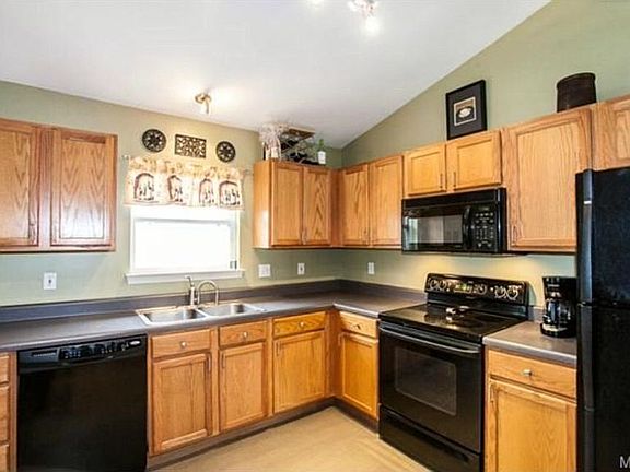 Fabulous three bedroom three bath home with 2 car garage backing to the park (which offers a public swimming pool, dog park, playgrounds and tennis courts)! This home has a vaulted family room with bay window and gorgeous hardwood floors. Large open kitchen leads out to the deck overlooking the park. Main floor laundry room off the kitchen, master bedroom suite and two other bedrooms have new carpet that was just installed 3/15 and all three bathrooms have new ceramic tile installed 3/15. Very nice partially finished basement with a full bathroom and wet bar area and plenty of storage. Just minutes from I-44, donât wait, this one wonât last long!