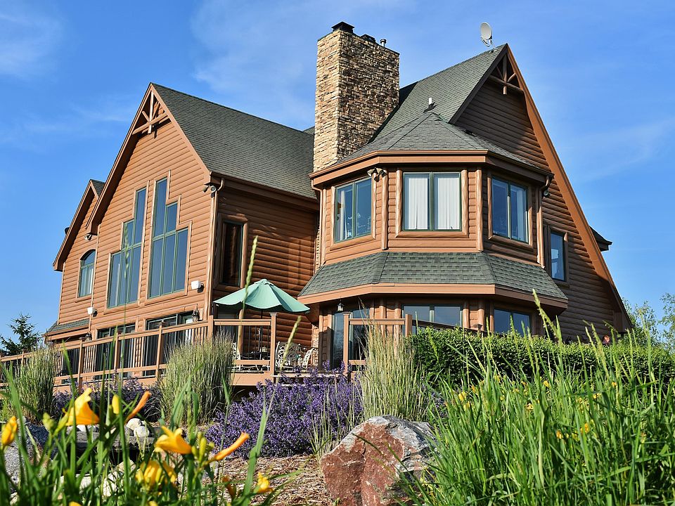 Country Living! 35 acre estate located adjacent to Jackson Marsh and Cedar Creek. Modern 4 bedroom rustic style home with large deck and split log siding. Interior features pine siding, full log beams, log stairs and railings. See through fireplace in living rm to dining rm. Sunken octagon dining rm surrounded with windows. Large office/den with cedar ceiling and fireplace. 5,200 sq/ft heated barn with nine stalls, dutch doors, plenty of storage, wash stall, bathroom and tack room. The lot features 3 fenced pastures, groomed trails and a stocked pond with pier!