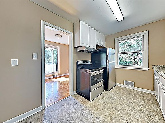 Super cute, updated 3 bedroom bungalow in the heart of Durham, close to Highway's and shopping! Open living room/dining room combo off entry with large windows for additional natural light. Kitchen features new flooring, counter tops, and Shaker style cabinets. New HVAC, refinished hardwood floors, 1st floor bathroom with new vanity & light bar, plus full basement w/bathroom ready for your inspiration!