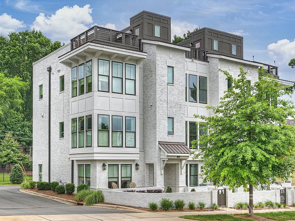 Luxury townhome located in sought after Myers Park. The private courtyard entrance leads to the lower level where you’ll find a spacious bedroom w/ recessed lights & custom window treatments - perfect office space. Lower level bath includes shower w/ black tile & shiplap millwork. Open concept main level features a chef’s kitchen w/ quartz countertops, tile backsplash, SS appliances, gas range & hood vent, large eat-in island w/ waterfall countertop & pendant lights. Large living space features breathtaking quartz surround FP, recessed lights, built-in window coverings, & light, wide plank floors. Upstairs, corner primary suite includes massive walk-in closet w/ built-in shelving. Spa-like primary bath includes dual vanity, large shower & linen closet. Massive rooftop terrace includes built-in shade awning. 2-car garage w/ side-by-side parking includes 220V Electric Car outlet. Blocks from Greenway, Booty Loop, Park Shopping Center & overlooking Petit Philippe Fine Wine.