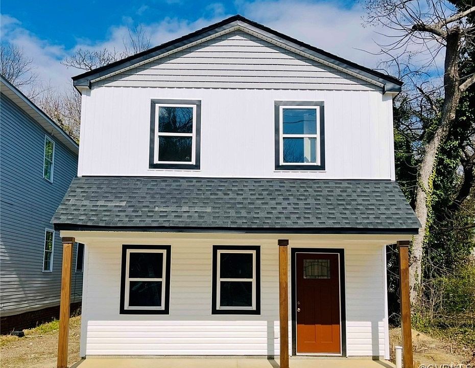WELCOME HOME to this lovely BRAND-NEW CONSTRUCTION gem nestled in Petersburg! Absolutely the perfect starter home, this quaint abode offers you 3beds/2baths & 1200 cozy square feet. Every detail in the home was carefully curated by the builder, which is evident in the intentional design aesthetics that are immediately apparent. As you grace the front yard, you are welcomed by a full front porch to house your rocking swing or a couple of lounge chairs, and is sure to be a favorite spot for relaxing after work in the evenings while your furbaby plays around you. Enter the front door and step into your open-concept living area, boasting your built-in electric fireplace & your half bath, complementary touches to warmly invite any guests into your space. Blending seamlessly with the family room is the heart of the house, THE gathering place: your gorgeous kitchen--featuring a stately island, granite countertops, and plenty of cabinet storage. NO CARPETS to worry about here…SOLID HARDWOOD flooring blankets the home throughout. Off the rear of the kitchen is quick access to your backyard, which affords you LOW yard maintenance plus a private area to let the pooch out at night. Upstairs, find your spacious primary retreat featuring en-suite bath with a spectacular walk-in tiled shower and tile flooring. Two additional bedrooms allow the kids to have their own spaces while not being TOO far away from you. Need to give (or take) some baths? You're covered...your generous second full bath with tub/shower combo will be a welcome destination for both you & the little ones and your guests, whoever needs it! (As long as they're not in YOUR bathroom, right? :) Be pleasantly surprised at one of your newest favorite conveniences when you realize your clothes hampers don't need to travel far, either: save time AND steps w/ your laundry area on the same floor as the bedrooms...ah, it's the little things! Think about it: WHY BUY AN OLD HOUSE WHEN YOU CAN BUY A NEW HOUSE?! Envision your family creating your next memories HERE!
