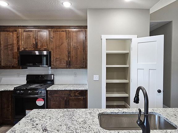 NEW and ready to close! PRIVACY fenced back yard!. Fully sodded backyard welcomes a stairway leading off the upper deck! This stunning new construction features everything you've been looking for and more. Built by JK Construction, Inc.(an onsite builder with 30+ yrs experience) Enjoy the elegance and durability of granite countertops , the sleekness of stainless steel appliances, complete with a **gas range for your culinary adventures. Enjoy your**walk-in pantry*** offering wooden shelving.The open floor plan ensures a spacious and inviting atmosphere, perfect for both daily living and entertaining guests. With a **walkout basement, you have even more living and flexibility to create the ultimate home setup. The laundry room is on the main level, near the master bedroom and (not) a walk-thru to the garage..'Close the door' and see no more!This home boasts 5 bedrooms, providing plenty of room for everyone to have their own personal space. Accompanied by 3 bathrooms, you'll never have to worry about the bathroom traffic during busy mornings. There are 3 bedrooms on the main floor/split bedroom plan and HUUUge bedrooms in the basement, also a split, bedroom plan.The ultimate **teen-suite** measuring in 12.10x18.10 AND closet with built-in wooden shelving of 5.4x12.11!!Relax and unwind in not just one but two living areas, offering versatility in how you utilize these spaces. Additionally, storage is not an issue AND **STORM shelter is also included in the basement.Don't miss out on this fantastic opportunity to make this house your home sweet home in beautiful Ozark!