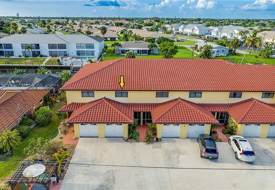 It's not often the Perfect Gulf Access Condo with a GARAGE comes on the market! This unit has been professionally cleaned and is Move in Ready! Discover the perfect blend of comfort and convenience in this 2 Story Condo in SE Cape Coral. Palm Grove is a 55+ Gulf Access Community located on the Katova Canal. This inviting home boasts Two primary suites, each featuring its own Full En-suite bath, ensuring ample privacy. The open kitchen, complete with a breakfast bar, is ideal for both everyday meals and entertaining. Relax and enjoy the outdoor space on not One, but Two screened lanais—one accessible from the living area and another from the upstairs bedroom. With a half bath Downstairs there's no shortage of space for guests and family alike. As mentioned, the property includes a One-Car Garage for your convenience. For boating enthusiasts, there's room for a boat slip with plans already approved!! This condo offers both practicality and potential in a desirable Cape Coral location!