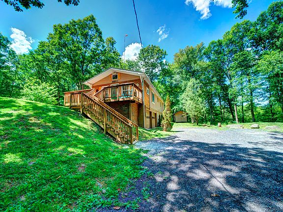 5 acres, no community, two 2-car garages AND backs up to state gameland! This 3 bedroom 2 bath home in the heart of the Pocono Mountains is the getaway retreat you've been looking for! Perfect for your weekend getaway to ATV, hike, enjoy nature, target shoot, or just sit back and enjoy peace in quiet. Garage space is plenty for cars AND all the toys, and the hot tub and wood burning fireplace make this a year round escape or investment property. Additional acreage and neighboring properties available as well for a family compound!