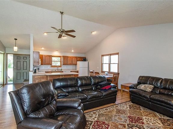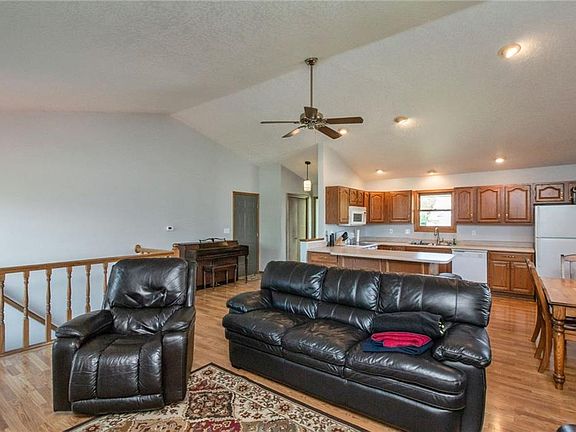 Location Location Location Wonderfully maintained ranch home with 3 bedrooms, 2 full baths, 1st floor laundry, front kitchen and vaulted great room on the main level. New paint, carpet, fixtures and many updates The lower level boasts 2 additional non-confirming bedrooms, ¾ bath, office, storage and rec room. There is 2,580 square feet of finished living space. It has an oversized 2 car garage with service door. Low maintenance steel siding with newer roof and central A/C. Sit on your rear deck and overlook a park-like setting and fully fenced yard. Travel 4 blocks to the east down the walk/bike trail to the ADM Jr./Sr. High School or 1 block west to Adel's Evan's Park The home is located on a quiet cul-de-sac with quick access to all of Adel amenities This is a wonderful opportunity to call the Sundance Valley development home Call/Text or Email me today for a private tour