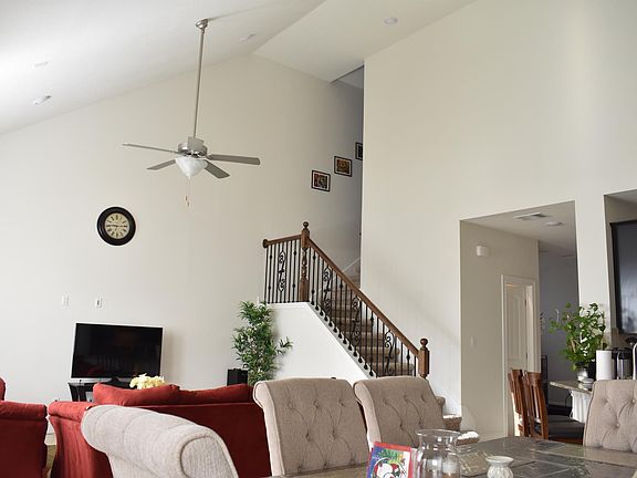 Stunning two story foyer entrance & high living room ceilings