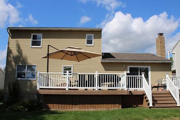 -Beautifully remodeled two story with all new kitchen and bathrooms, new windows and large finished lower level. Features attached two car garage, central a/c, 1st floor laundry, large back deck, covered front patio and gas fireplace. Pride of ownership shows!