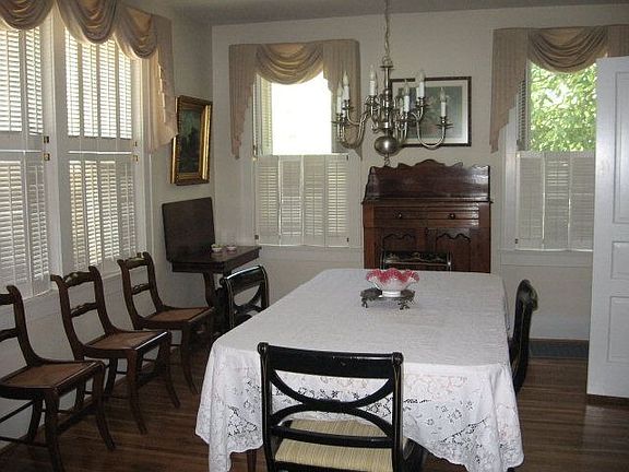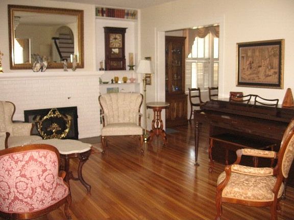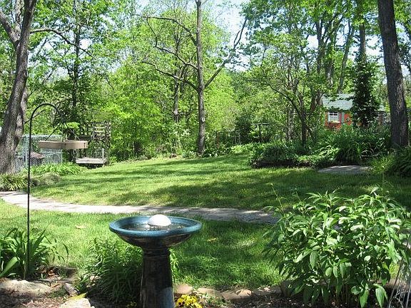 Located in historic neighborhood and dead end street this lovingly cared for home exudes character inside & out. Well manicured lawn with lush landscaping; courtyard for relaxing, patio for entertaining in fenced backyard with parklike setting of mature trees & more. Interior boasts arched entry, gorgeous hardwoods on main & up, carpet in bedrooms 1+yr new (hardwoods under carpet). Relaxing sunroom with built in bookcases, spacious living room with fireplace, formal oversized dining room, eat in kitchen portrays appliance just over a year new, roll-outs and ample pantry space. All bedrooms are spacious & upstairs bath updated with granite countertops. With in walking distance of schools & park. 3 light fixtures are negotiable. 2 in bedrooms & 1 in living room.