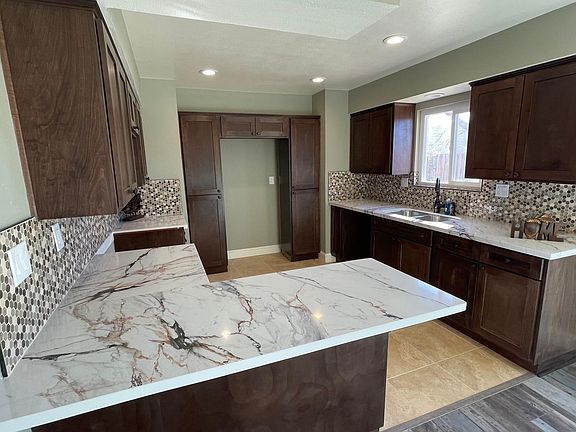 Completely remodeled Ridgecrest home! Nestled on sizable 5672-SqFt lot, this 1144-SqFt home includes an attached 2-car garage & water-free landscaping frames the exterior leading up to a large French porch, perfect for outdoor seating. Filled with plenty of light from the all over nice-sized windows, find recessed lighting, accent moldings & waterproof grey vinyl floors throughout an open floorplan housing a large step-down living room, dining room & comfortable family room. The spaciously remodeled kitchen includes glossy quartz countertops set atop ample built-in cabinets & enjoys a natural flow into the family room providing sliding door access out to a private backyard. Bedrooms featuring center ceiling fans plus built-in closet space & both remodeled bathrooms include glass walk-in showers. Outside, remark the spacious setting.