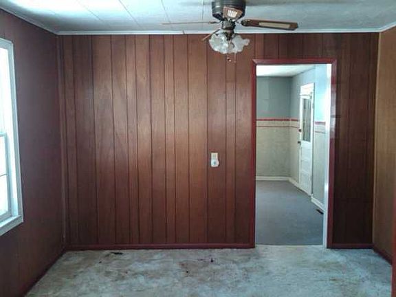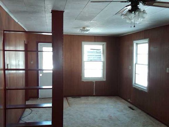 Exterior Features: Single story home, wheel chair access, small covered front porch. Siding: Fair condition. Windows: Intact. Soffits and Eaves: Intact. SF: Unknown. Patio/Porch: Small covered front door. Roof: Unknown. Driveway: None. Interior Features: Home interior is very clean and has been well taken care of. Living Room: Carpet looks clean, walls are wood panel and room has built in shelving Dining Room: Carpet, wood panel walls and ceiling fan. Kitchen: Room is in great condition; cabinets, counter-tops and sink are all intact. Bathroom: Room is also in good condition; tub, toilet and sink are intact. Bedroom: (1) Tan walls, carpet, trim and closet space. (2) Wood panel walls, carpet looks clean. Basement: Unfinished. Mechanics: Furnace and Hot Water Tank. Garage: Storage shed in back of home.