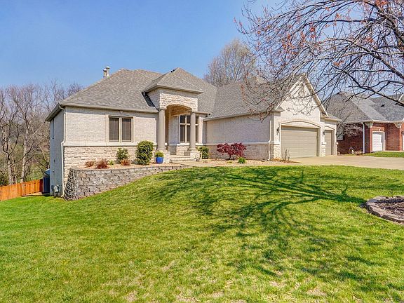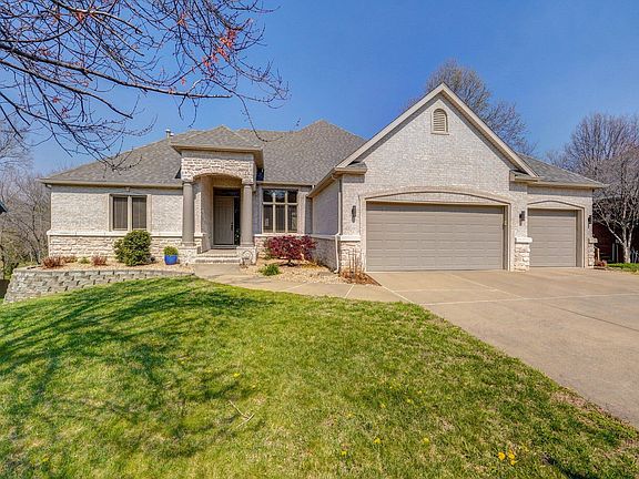 This exquisite 5-bed, 3.5-bath all-brick home is nestled in the coveted gated community of Stone Meadow. Inside, enjoy spacious living and dining areas, a gourmet kitchen with granite countertops and stainless steel appliances, and a delightful breakfast nook with scenic views. Upstairs, find three bedrooms including a luxurious primary suite. Main-floor laundry and guest bath offer convenience. The lower level boasts a second living area with a wet bar, two bedrooms, a John Deere room, and ample storage.