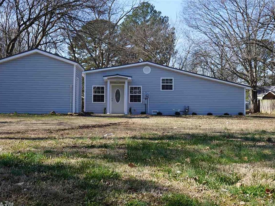 Super cute remodel featuring new laminate floors throughout, new cabinets, appliances, plumbing, new windows, new CH&A, new metal roof, new bathrooms with gorgeous custom tile walk in shower with glass doors in the master and beautiful custom tile surround in the main bathroom. House has an open floor plan with an elevated kitchen and main bath & laundry and with the living room and bedrooms being on the same level. Huge back yard and a nice wired shop building with concrete floor.