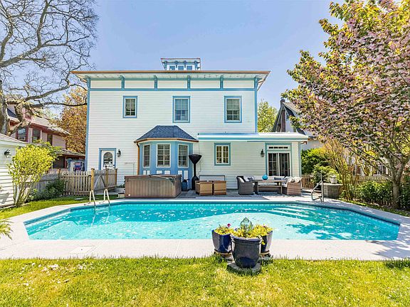 Nestled along the picturesque Washington Street, 1109 Washington beckons with its timeless charm and modern allure. This Italianate style custom-designed home is inspired by the Southern Mansion and the Mainstay Inn, two of Cape May’s famous historic properties. Newly built in 2013, it seamlessly blends the elegance of Victorian Cape May with contemporary luxury and attention to detail. As you approach, a grand covered porch spanning the length of the house welcomes you, offering a serene spot to admire the beautifully landscaped front yard and across the street from the iconic Emlen Physick Estate. Step inside to discover a true architectural masterpiece, honored as the 2013 MAC Designer Home, with every detail meticulously crafted to perfection. The main level boasts two spacious living areas, including a versatile sunroom with a Murphy bed and private full bathroom, perfect for guests or as a flexible space. A first-floor office adds further adaptability to the layout, showcasing the home's functionality and thoughtful design. All floors radiate warmth with solid teak hardwood. Prepare to be enchanted by the kitchen, a culinary enthusiast's dream adorned with designer-installed cabinets, a double-thick quartz island countertop, and top-of-the-line Thermador, Bosch, and Viking appliances. The custom backsplash, featuring an 1872 Cape May map, adds a touch of historical charm, while the Burberry Plaid Barnwood Ceiling and luxurious Philip Jeffries silk grass cloth wallpaper elevate the dining/living room to new heights of elegance. Venture outdoors to your own private oasis, where a saltwater pool awaits, surrounded by "Cool Deck" coated decking and a 21-foot motorized awning. A 7-person hot tub offers the ultimate in relaxation, while the fenced yard ensures privacy and security for pets and children. The front fence, crafted from wrought iron reclaimed from Capital Hill, Washington D.C., adds a touch of history and sophistication to the exterior. Ascending to the second floor, discover a serene retreat in the primary bedroom, complete with a stunning bathroom featuring a Restoration Hardware vanity, clawfoot tub, Maya Romanoff Glass Wallpaper, and designer lighting. Two additional bedrooms share a Jack & Jill bathroom, each adorned with high-end tile by New Ravenna, exemplifying the home's commitment to luxury and quality. The third floor offers additional bonus space, currently utilized as a home gym, with ample natural light and endless possibilities for customization to suit your lifestyle. Beyond its undeniable charm and luxury, 1109 Washington presents a unique opportunity for income generation. In 2021 and 2022, the property commanded $10,000 per week as a whole-house rental during peak season, while in 2023, the first-floor sun-porch generated approximately $13,000 in rental income on Airbnb. Whether you're seeking a serene retreat, a lucrative investment opportunity, or a combination of both, 1109 Washington offers the perfect blend of comfort, style, low maintenance and income potential—all waiting to be yours to enjoy and cherish for years to come.